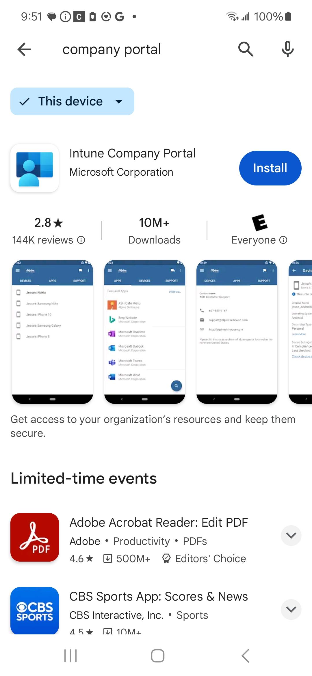 1. Download "Intune Company Portal" from the Play Store